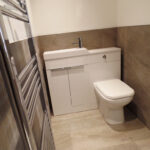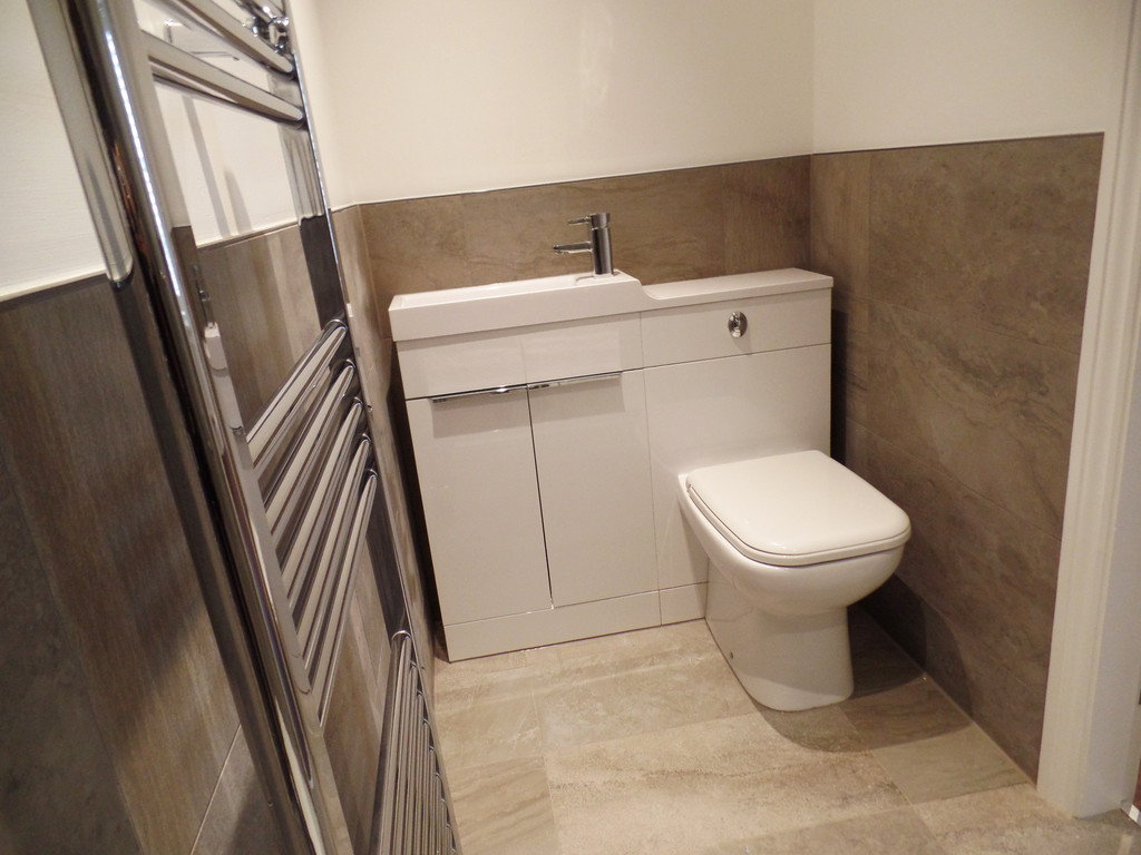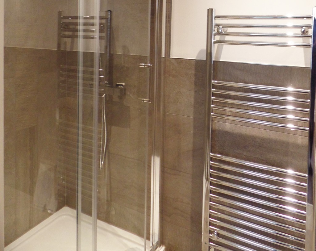 BATHROOM White suite, power shower, vanity unit, towel radiator